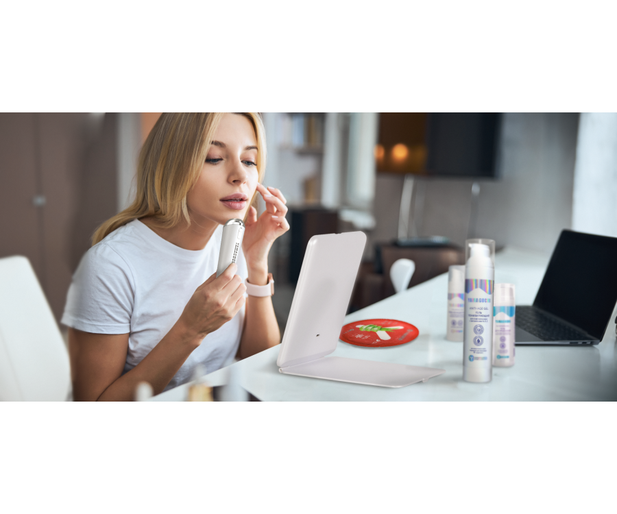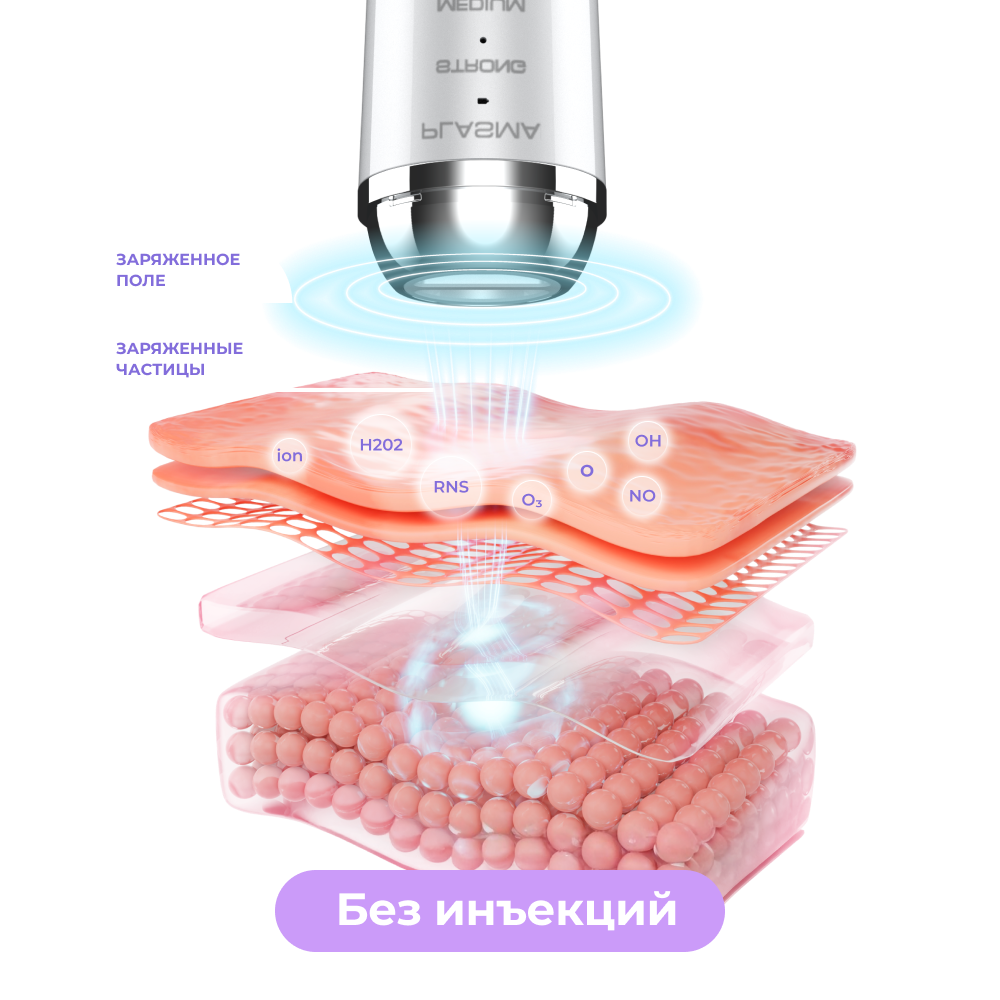 Энергия холодной плазмы (ионизованного газа низкой температуры до 40°), быстро распределяясь по поверхности кожи, способствует снижению количества бактериальных клеток, регенерации ткани и естественному синтезу коллагена и эластина. В домашних условиях прибор поможет добиться безинъекционного омоложения и косметологического ухода за распространёнными проблемами кожи — акне, угревой сыпью и другими видами воспалений. Использование плазма-аппарата курсами сокращает морщины, выравнивает цвет лица, шлифует рубцы и следы постакне, тем самым деликатно восстанавливая однородную текстуру дермы.